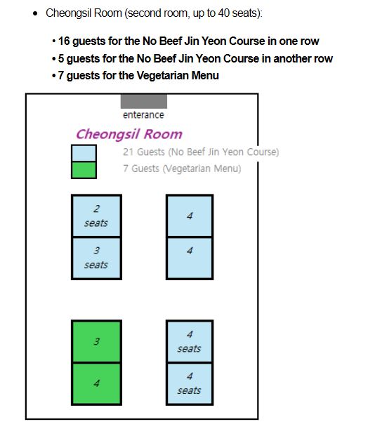 비건 코스의 내용과 식재료 구성, 좌석 배치와 행사 동선까지