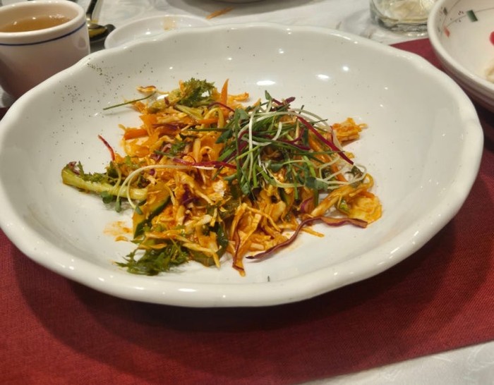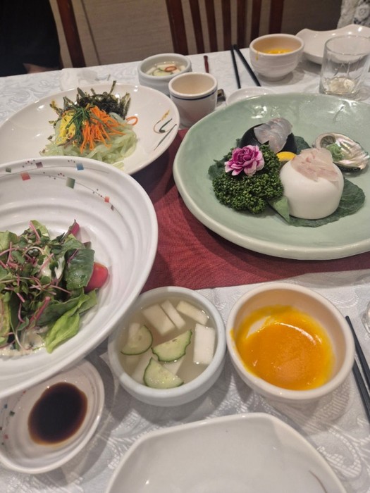 죽과 물김치 다음으로 나온 것은 탕평채, 야채샐러드, 계절냉채, 활어회였습니다