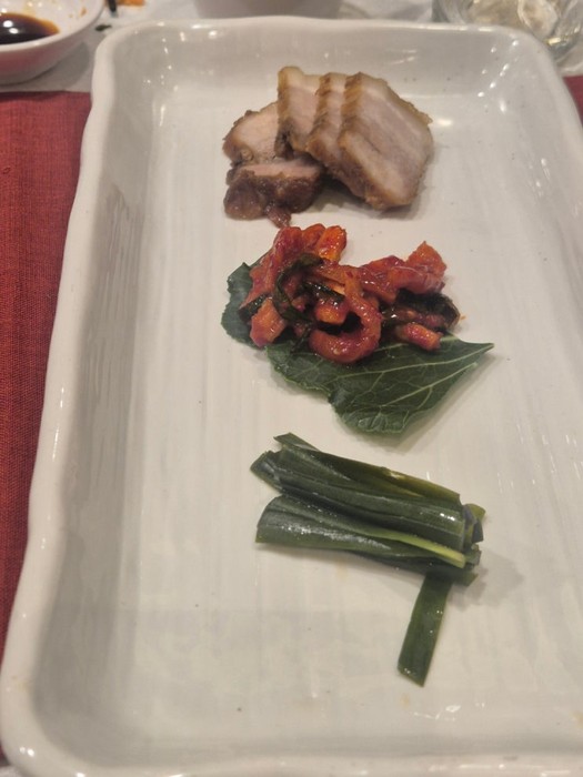 보쌈이랑 부추 그리고 무김치가 나왔는데 요것도 간이 세지 않고 딱 알맞아서 맛있었어요
