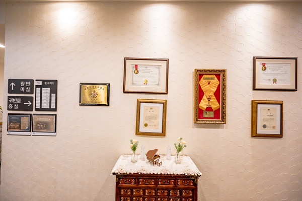 벽면 곳곳의 인증서와 상패는 오랜 시간 쌓아온 신뢰를 상징한다.
