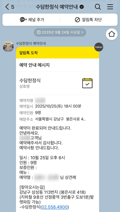 블루리본 음식점이라는 이유로 수담한정식 강남점으로 결정!