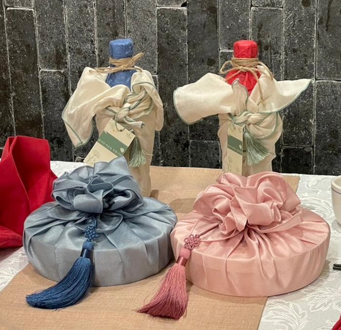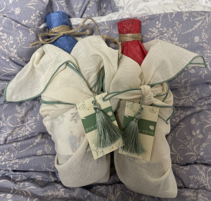 결국 2병씩 에코보자기에 어설프게 포장했다.