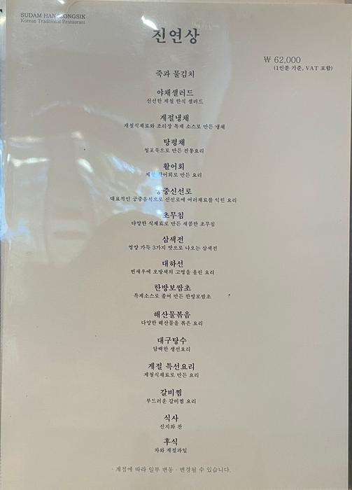 예약은 상견례 한 달 전, 추천받는 메뉴인 “진연상”으로 했다.