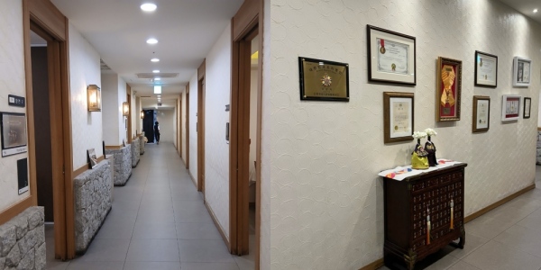 벽면의 상패와 작품들이 더해져 신뢰감 있는 분위기를 느낄 수 있었고,