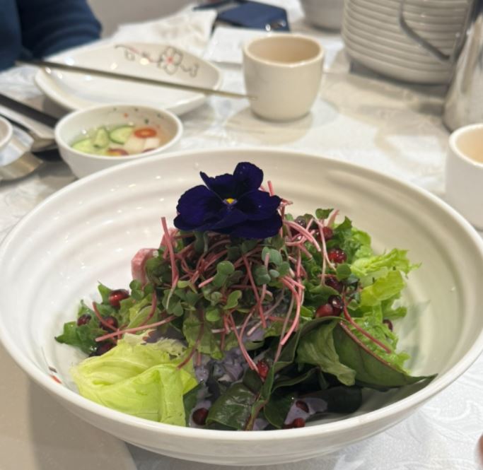 죽과 물김치로 시작해 야채 샐러드, 계절 냉채, 탕평채, 활어회까지 이어지는 초반 코스부터 정갈함이 느껴졌습니다.