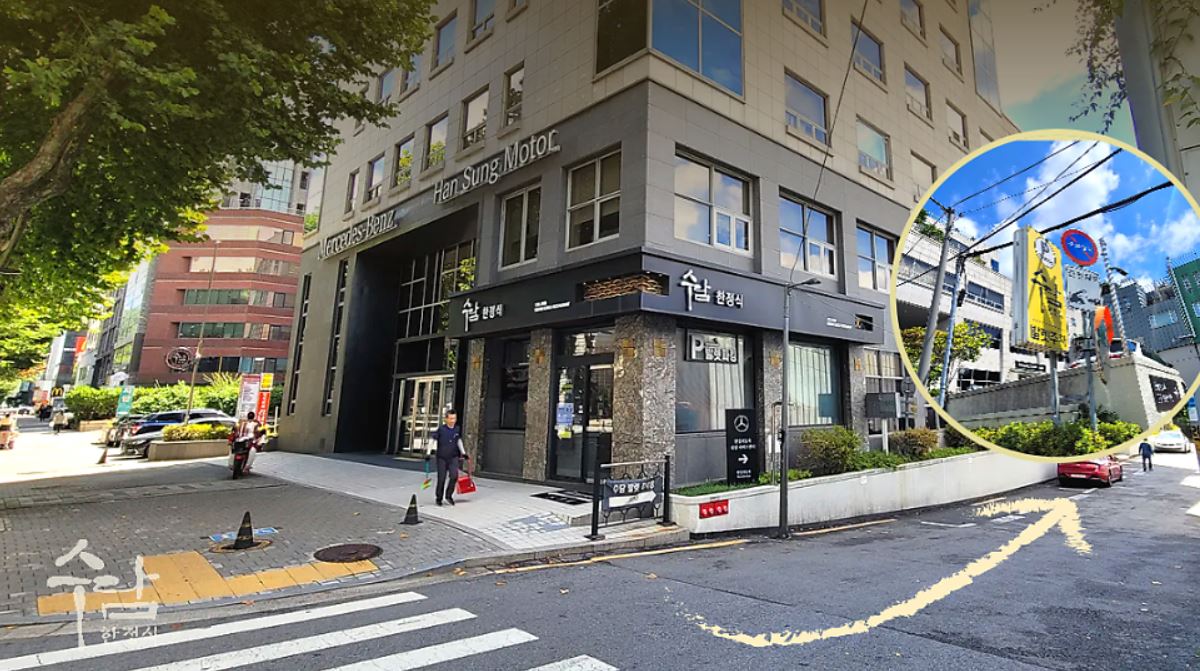 건물 뒷편으로 진입시, 노랑색 수담한정식 간판이 보이실 거예요. 저희 주차요원이 친절히 안내해 드리겠습니다~
